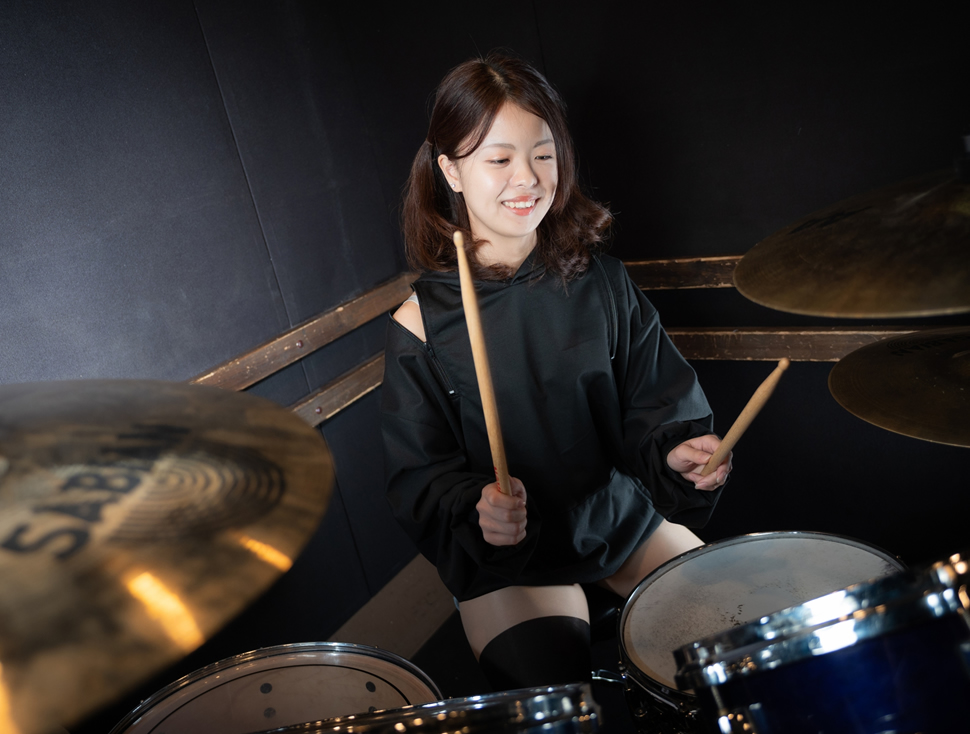 リズム感・グルーヴを体で覚える。防音設備の整った専用スタジオで練習。